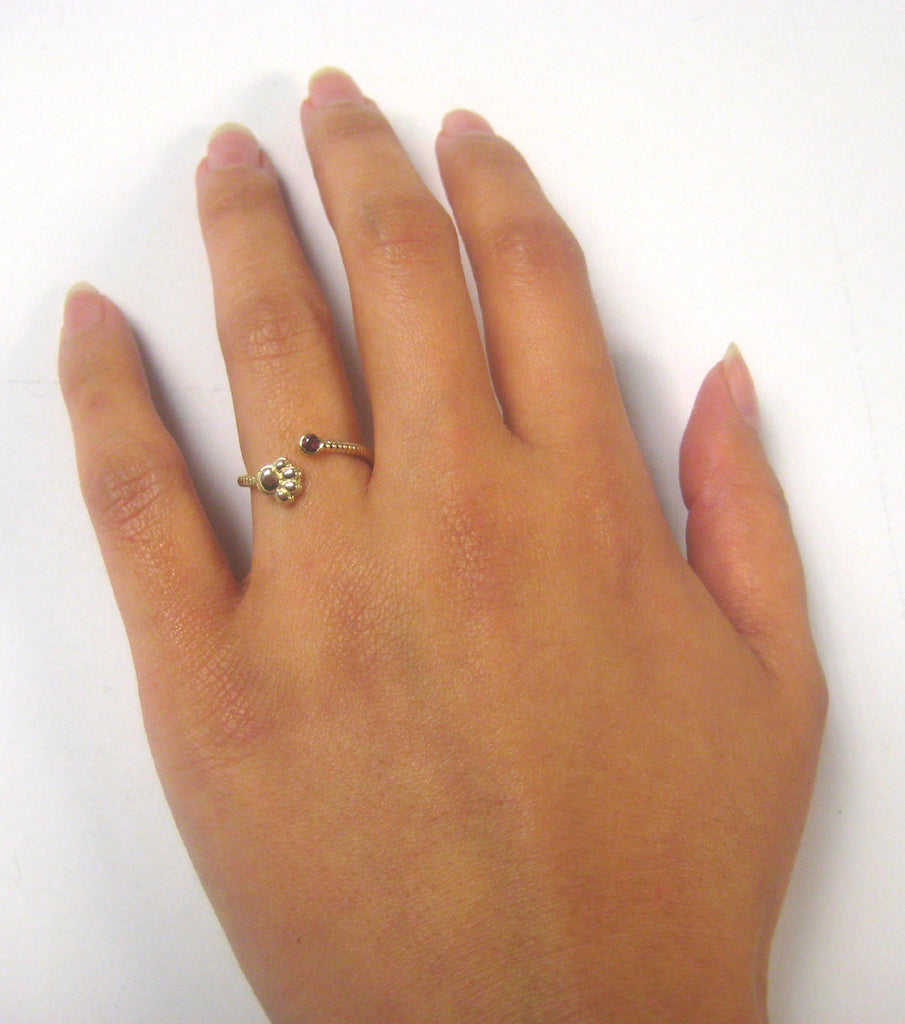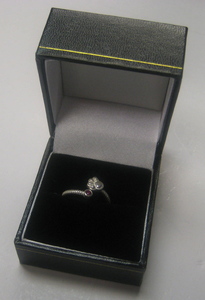 Sterling Silver or Gold Paw Print Ring with Ruby
