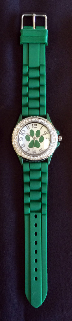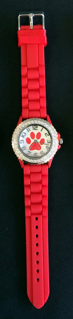 Paw Watch with Crystals, Stainless Steel Back and Silicone Band
