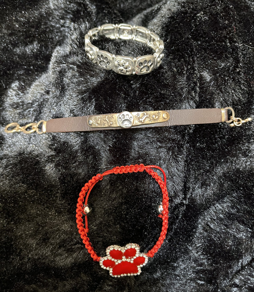 Set of 3 “Paw Bracelets” paw stretch, paw with toggle & adjustable rope paw